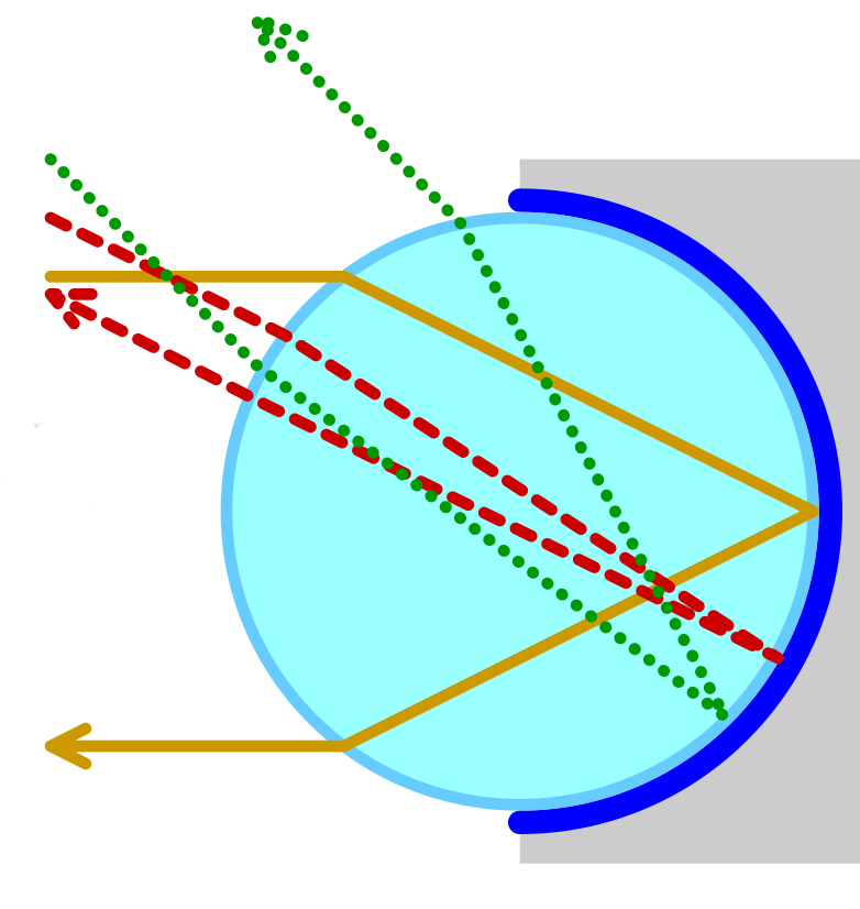 Cat’s Eye Retroreflectors: The cat's eye retroreflector uses a transparent sphere with a reflective surface behind it. When light enters the sphere, it's focused onto the reflective surface and sent back to the source.