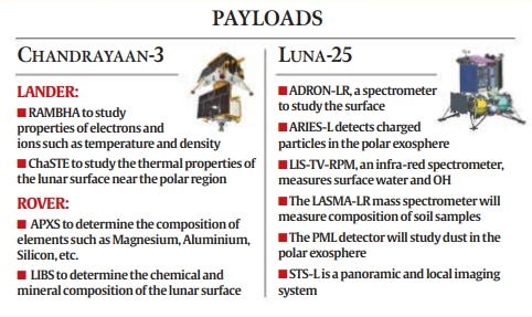 Both Luna-25 and Chandrayaan-3 harbor unique objectives and payloads that define their missions: